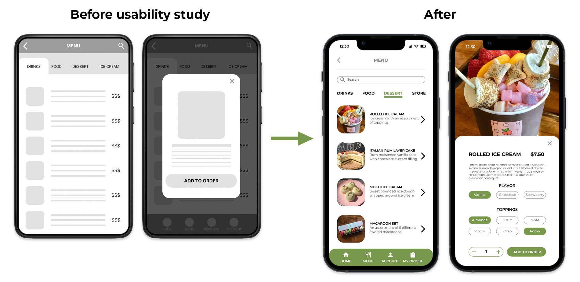 After revising my design and creating mockups, I connected the screens using the same user flow to create my high-fidelity prototype. Check out the prototype and try ordering yourself some rolled ice cream!